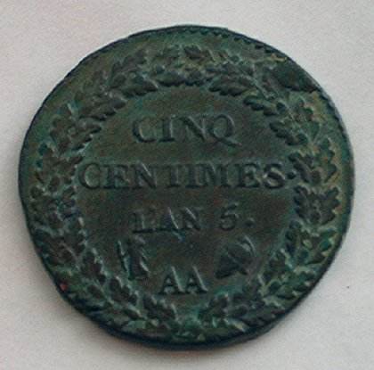 Sinon j'ai aussi cette belle monnaie du Directoire que je trouve superbe car peu usée !!!!!!!!!