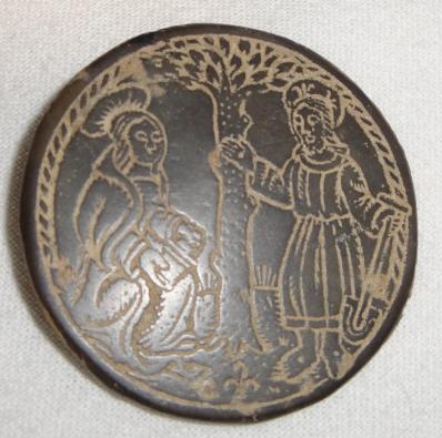 Même si je n'ai pas eu trop l'occasion de sortir à cause ou grâce à mes chevaux, j'ai quand même fait quelques trouvailles sympa et parmis elles, ce bouton enseigne du Christ Jardinier apparaissant à Marie-Madeleine.
