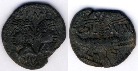 Superbe imitation gauloise d'un As de Nimes dans un bronze de qualité... Sortie telle que lors de mon dernier séjour en Alsace devant les yeux ébahis de mon cher frère. Dans cet état c'est exceptionnel par chez nous...