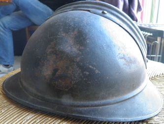 jolie coque d'adrian 15 . a noter que cette forme de casque etait encore utilisée par les sapeurs pompiers jusque vers les années 80 .