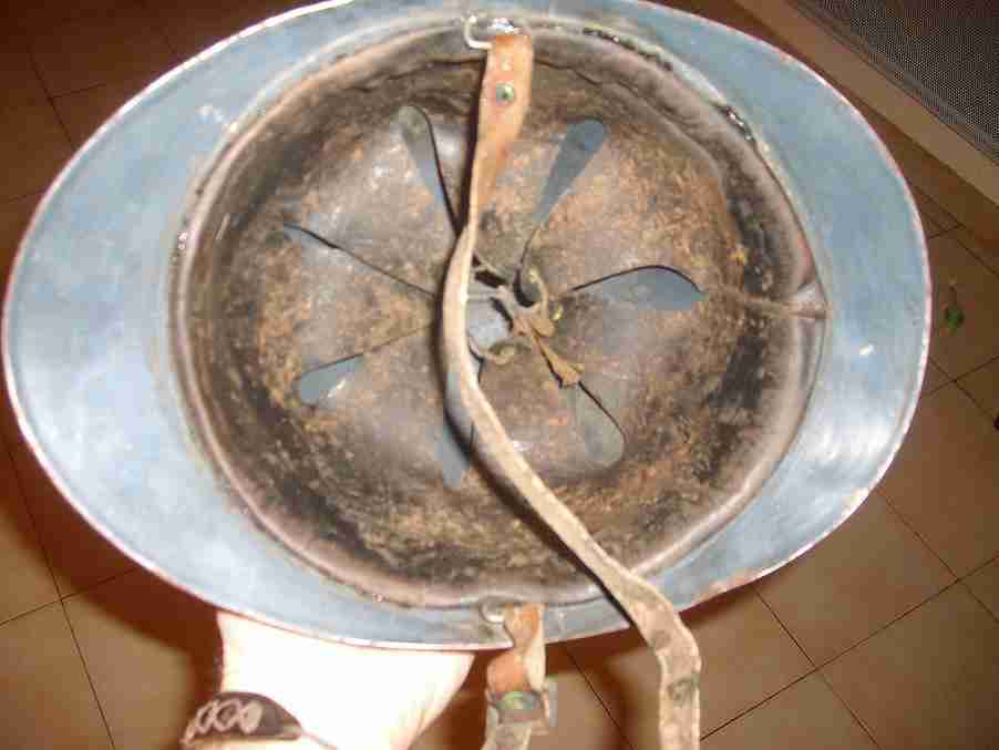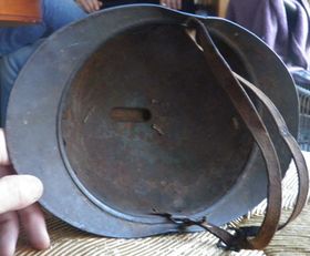 je me permet de montrer l'interieur du casque de mon arriere grand pere .combattant sous 14/18