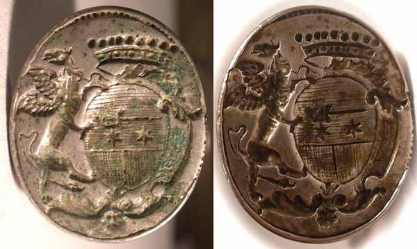 De mémoire il faut mettre l'objet (en argent) dans une feuille d'alu, sans trop serrer, et le faire bouillir un certain temps avec du gros sel. Ca fait peur au début, mais ça permet d'enlever les oxydes, et le résultat (dans le cas de mon sceau) est excellent.