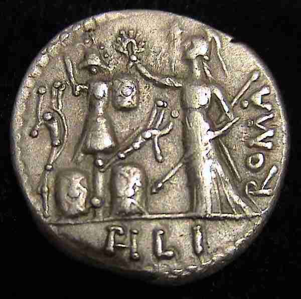 à tous, je vous présente ce denier de la République Romaine de M. Furius L.f.Philus daté de -119 av J.C Si je vous le dévoile, se n'est pas seulement qu'il est beau mais il a un lien 'direct' avec notre histoire locale Ce denier commémore la victoire des romains sur les Arvernes et les Allobroges. Suite à cette défaite, les terres Allobroges sont intégrées dans la Province de la Gaule Transalpine. Voilà un petit partage qui j'espères vous fera plaisir Arvi