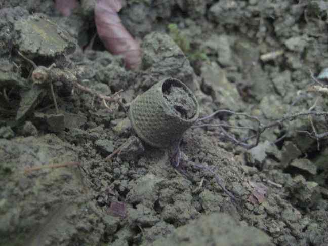 Pour vous faire plaisir, voici des photos de petits in-situ fait dans un sous-bois pendant une petite heure ! Au programme ( mon coup de coeur ) ce dé à coudre ( ou plutôt bague à coudre ), une petite boucle et ce napo encore en terre et une fois passé sous l'eau dans le premier ruisseau rencontré pas loin !