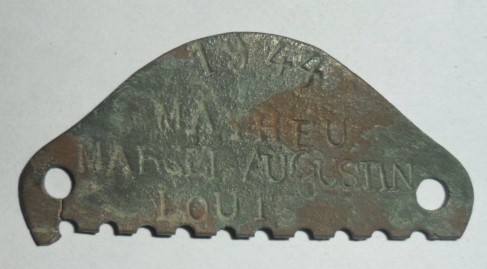 S'il y a un cimetière militaire dans la région ou tu as trouvé la plaque, tu pourras voir si M Matheu est répertorié dans les archives