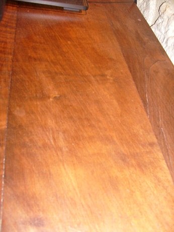 Enfin, j'ai trouvé un super produit chez Starwax. C'est une cire teintée !! 2 en 1 !! Un truc GENIAL !! Fini le temps de passer une teinte puis deux à trois couches de cire !! Tu passes cette teinte cirée, tu laisses deux heures et tu lustres !!! LE TOP !!! Voici en images le résultat...