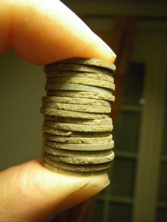 Annecdotes : la plupart ont très bien sonné au Deus fréquence 85. Deux ou trois ont sonné sur d'autres fréquences (entre 75 et 40). Dû à l'orientation et à la profondeur vraisembablement.
