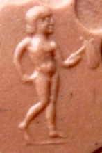 Quant à l'intaille, ce que j'ai pu trouver de plus approchant est une représentation de Thésée ramassant les affaires de son père Egée, légitimant ainsi sa filiation. En voici une empreinte: