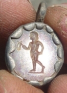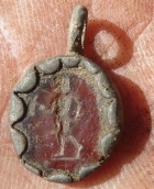 Allez, je le mets: c'est une chimère en tant qu'objet, deux objets en un se télescopant à plusieurs siècles de distance; Intaille en cornaline remontée en pendentif au Moyen Age.
