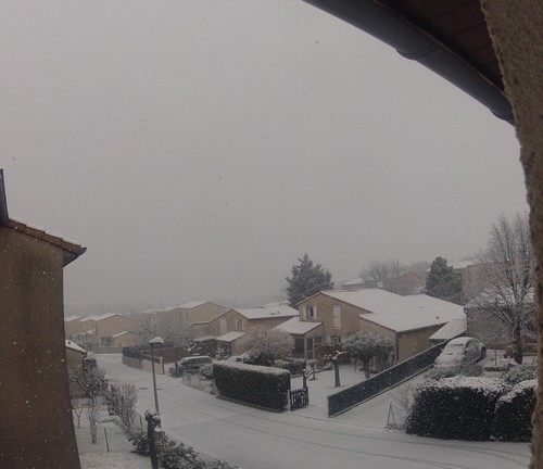 On a eu du verglas, du moins 7 et là il y a 5 cm de neige et la neige tombera toute la semaine !!!