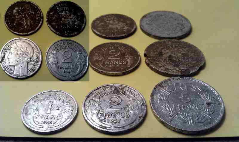 Ça élimine le plus gros mais je ne suis pas complètement satisfait, je souhaite éliminer les traces de rouille comme sur la 5 Francs, ou les traces noires/marrons sur la 2 Francs.