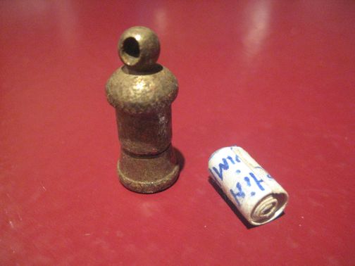 Eh bien moi, j'ai fait la même découverte il y a un mois, dans la forêt qui est derrière chez moi. A table le midi je discute de ma trouvaille, mon fils insiste pour que j'ouvre l'objet pour voir si il y avait encore un papier lisible a l'intérieur.