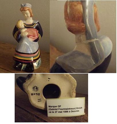 Ce n'est pas simplement un peu d'aquarelle et un coup de vernis.Je ne dis pas çà pour être contrariant Pascalus, mais la restauration, c'est tout un métier ! Trouver les matières exactes, trouver la peinture adéquate et alors le plus dur c'est de connaître l'effet de pigments de la peinture, car il faudra faire de petit mélanges savant. Je ne dis pas çà pour te décourager, mais j'ai fais un peu de restauration avec mes poteries de Raeren. Tout dépend du type de peinture : Aquarelle, peinture à l'huile, peinture pour plastic, peinture acrylique..... Le 'gris' dans la coifure à l'arrière change plusieurs fois de ton ; Du gris gris clair au gris bleuté plus foncé. La nouvelle peinture ne peu pas être brillante ni mat , mais plautôt satinée.
