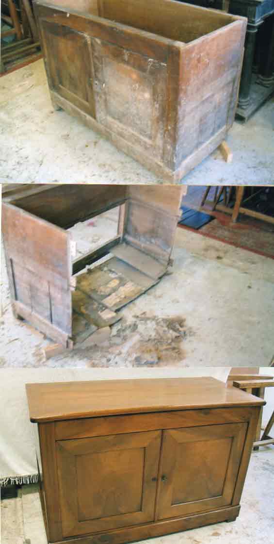 Une grosse restauration, d'un meuble rustique qui avait fait un très long séjour dans une cave, pour preuve les photos, un sauvetage de justesse