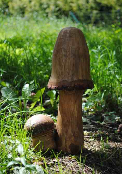 Aller je me lance:champignons tournés avec des buches de chêne,haut.44cm