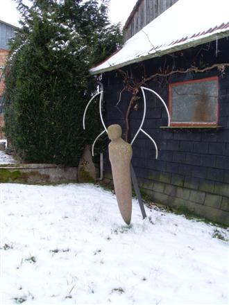 une autre genre ange ou démon en grès rose et fer.