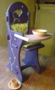Le cadeau de Noël pour ma fille: une chaise haute pour sa poupée, entièrement démontable (design par moi-même ), plus sa dinette en buis tourné (tasses soucoupes etc...).