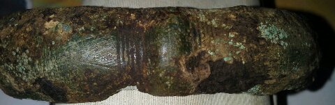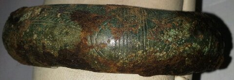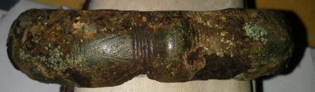 De retour d' une grande sortie en foret qui a bien faillit etre la pire de ma vie, pendant plusieurs heures, rien, quedal, pobdal, walou! Et mon compère ne s' en sortait guère mieux hélas... Et la sur le chemin du retour bien fatigué mais avec en tête que la petite trouvaille de derniere minute pourrait sauver de la bredouille voila que je tombe sur ce bracelet, qui me laisse un peu perplexe mais qui d'apres mes recherches pourrait etre un bracelet de l'age de bronze de type Bignan... Sous reserve bien sur dans la mesure ou je ne m' y connais pas dans cette periode, l'avis des pros pourrait m'aider.