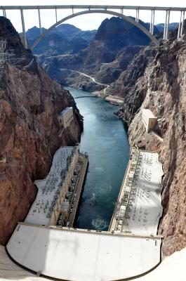 LA CARTE POSTALE DU JOUR. Sa silhouette élancée cache en réalité des mensurations titanesques : plus de 7.000 tonnes d'acier, 27 km3 de bétons et 600 km de câbles. Du haut de ses 274 mètres (ce qui en fait le septième pont le pus haut du monde) le Colorado River Bridge, toise désormais une autre merveille d'ingénierie : le barrage Hoover (Hoover Dam), le second plus grand des Etats-Unis, à la limite entre l'Arizona et le Nevada. Tout un symbole : le barrage avait été achevé en pleine Grande Dépression, le pont vient d'être inauguré à la fin de l'an passé, à l'heure où le pays connaît sa crise économique la plus grave depuis les années 30. On se rend sur le second pour observer le premier, et l'on finit en général sur le premier pour admirer le second.