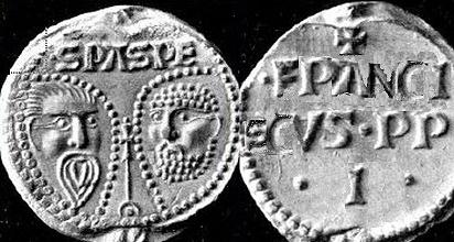 Avers:/ St-Paul et St-Pierre au dessus des 2 têtes SPA pour Sanctus Paulus et SPE pour Sanctus Petrus