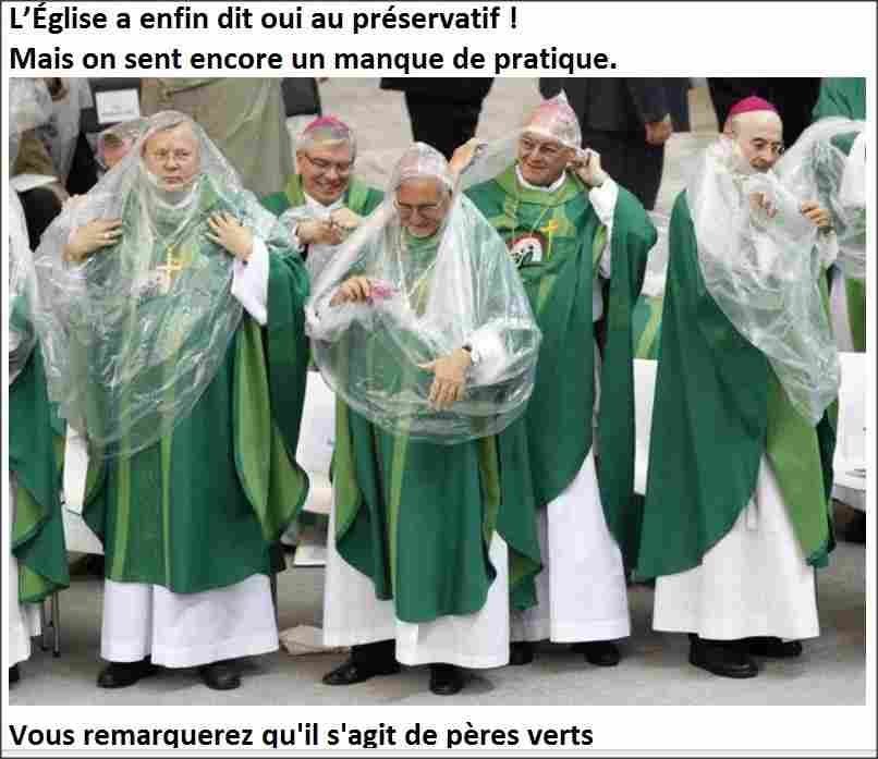 Qui sont ces pères sonnages, seraient ils pères méables, pour qu'ils enfilent un im per méable?? Pères blancs cachés sous des per verts