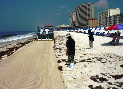 +hello salut rascal50 ils nettoient les plages ,il y a des endroits ou c'est fait tous les matins c'est plus agréable de se poser sur du sable propre.J'ai déja discuté avec les gars qui conduisent ses machines,ils en mettent pas mal a l'abri aussi donc il faut se lever tot pour passer avant.