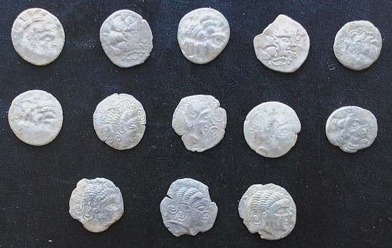 Finalement sur environ 10m2 ,treize monnaies gauloises, fourrées pour beaucoup(elles ne sonnent pas dur )!