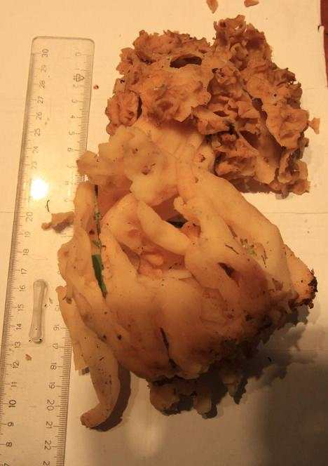 les morilles sont fini chez nous , j'ai trouvé mes derniéres en fin de semaine passé , 8 morilles pour 750 g , dont celle ci qui pesait a elle seule 210 g pour plus de 20 cms de haut .