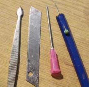 ........cuter de maquettiste(usé), crayon,cure-dents,bois en tout genres,os, aiguilles etc.. l'aiguille de cactus