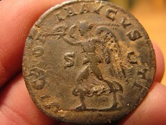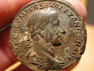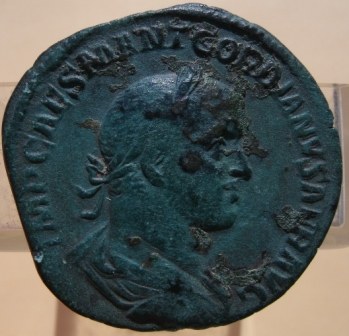 pour moi le plus beau sesterce que j'ai trouvé est ce gordiens II, il reste quelques concrétions mais j'ose pas trop le toucher.