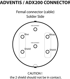 j'ai eu le même problème que toi, j'ai un schéma de branchement, je peux te l'envoyer par mail, sinon tu peux le demander au SAV de XP...sur le schéma il est marqué en regardant la prise de face les deux fils du milieu pas de branchement, fil supérieur de gauche (blue)...fil de droite supérieur (white) les deux fils du bas à gauche et à droite (shield)...