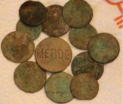 Je déambulais hier soir dans un bois quand tout à coup, je suis tombé sur une petite zone où ça sonnait de partout. Des ferreux en veux-tu en voilà mais soudain alors que je commençais à vouloir m’en éloigner, un son net et aigu retentit. Je me mis à creuser sur cette cible peu profonde, c’est alors que sous la couche d’humus apparut la chose, ce n’était point une merdouille comme je l’avais envisagé au départ mais bien une trouvaille on ne peut plus originale…