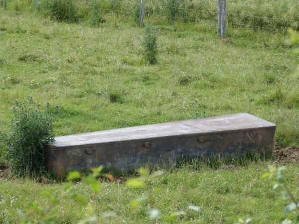 Ce qui me fait penser qu'il ne s'agit pas d'une auge, c'est la forme vraiment particulière, je suppose qu'une auge aurait été de forme rectangulaire et là , c'est vraiment la forme d'un cercueil.