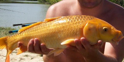 mais, vue que tu aime ça, je te montre une petite Koï prise l' année dernière, c' est vrai, elle est rikiki mais, je ne m'y attendais pas, c' est un peux comme une première jaune.