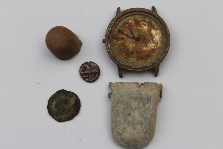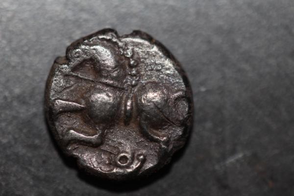 Petite sortie hier soir après le travail sur un champ, encore praticable, qui n'avait pas donné grand chose . Mis à part les déchets 3 trucs plutôt sympas , une belle ampoule de pélerin intacte, une petite roro, et la plus petite mais aussi la plus grande trouvaille , une drachme (ou quinaire) au grand oeil des Leuques (Poids1.60g, diam11mm).
