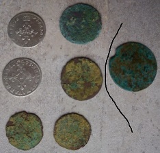 Les autres sont surement mortes, je sais juste qu'elles sont de la même époque que les 4 sols, surement des liards ou des deniers...