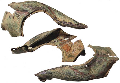 Là , j'ai un fragment objet (3 vues du même), qui est surement un fragment de cadran horaire, on y voit bien les chiffres de VII à XII et I.