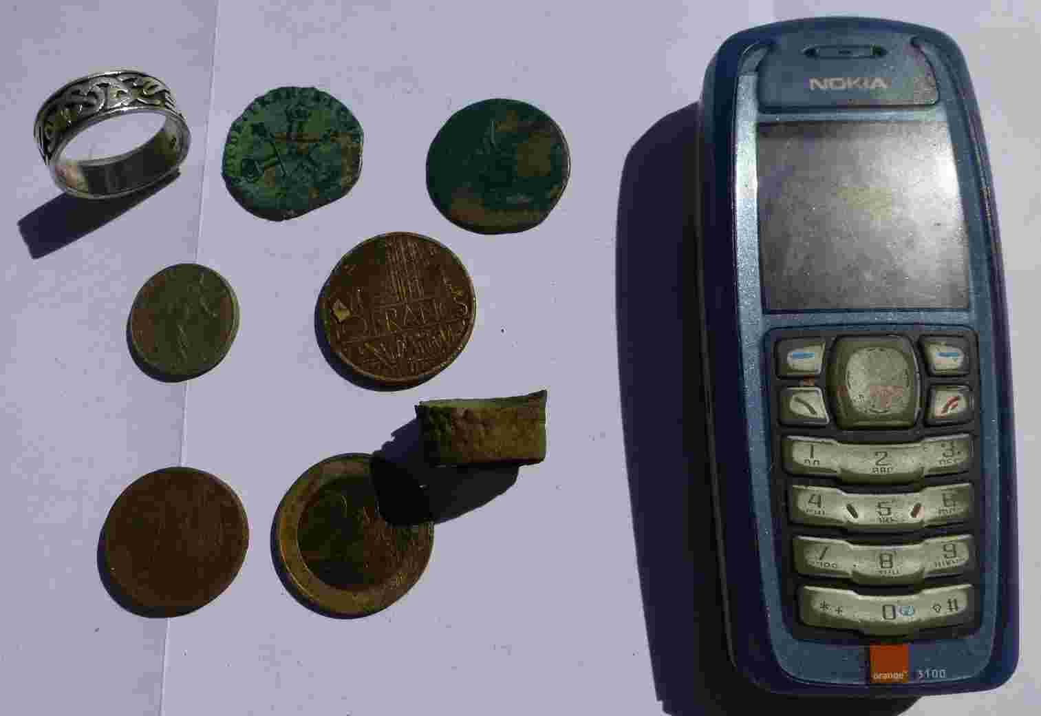 Du portable, en passant par les francs, les euros, le dé coupé, la bague 'tribale' en argent jusqu' aux l 2 '6 deniers dardenne', la panoplie est vraiment hétéroclite !!! une bonne sortie quand même avec une 6 deniers bien conservée