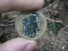 J'ai quitté le Finistère pour partir 2 semaines en Ariège, et je me suis offert 3 toute petites sorties, dont je me permet de partager avec vous mes photos de in-situ : ( je vous les présentes dans l'ordre des découvertes, et je vous épargne les balles de mousquet et autres déchets métalliques ). En fait j'ai détecté au hasard derrière ma location.