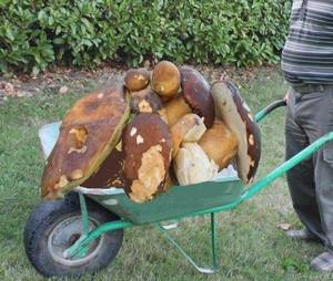 Bien sur, c'est une blague...n'empêche je me souviens que dans mon enfance Beaujolaise, il fallait bien une brouette pour ramener tous les cèpes que je trouvais, à l'époque les Lyonnais ne les ramassaient pas et leur accordaient tout juste un coup de pied...Cette époque est révolue.