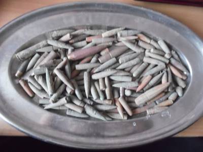 - balles de mousquets (guerre 70) et aussi schrapnell, ogives en tous genres ...