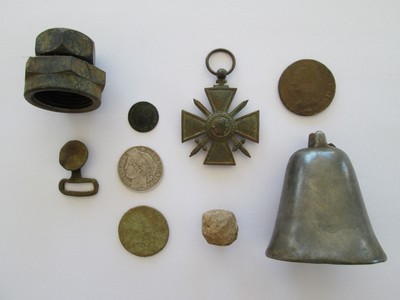 après plusieurs mois sans détection, (oui c'est possible.....) une petite sortie il y-a quelques jours avec une croix de guerre 1917 et quelques objets sympas. Je vous épargne les douilles et merdouilles...