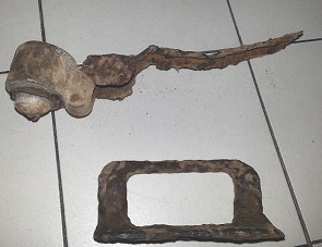 Suite à la réception de mon nouveau détecteur ce matin, je suis sorti en forêt et j'ai trouvé pas mal de merdouilles et ces deux objets.