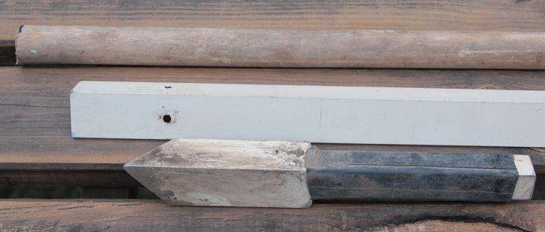 une cornière alu, un vieux manche outil de jardin quelques vis et un morceau de chambre à air VTT, bien pratique au fond du trou pour sortir la grosse conserve alu