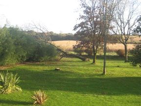 Ici, tout va bien, malgré la fameuse tempête Christian, qui n'a que ( heureusement ) fait tomber que quelques arbres ( comme celui-ci au fond du jardin ).
