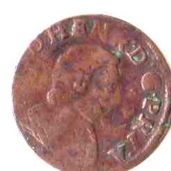 -diamètre 20ml,épaisseur 2ml, poids environ 2,9g/3g-matière'cuivre je pense'-Avers:une tête de PAPE je pense-Revers:3 fleurs de lys -4 chiffres:1-6- puis il me semble que c'est un 4 et enfin un 2