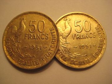 Je suis juste sortie un peu dans un p'tit sous-bois au fond de la route ou je réside ( que je n'avais jamais fait ) ! Je rentre dans celui-ci, un p'tit sentier : une p'tite applique, je continue dans le sous-bois, et à côté d'un arbre tombé à terre, un bon son, donc je creuse, et là : 2 monnaies de 50F de 1951 tout les deux !!! Et dans un état plus que correcte ( pour une fois ), bon, ce n'est pas la boursée du siècle, mais vu l'état, je suis content quand même ! Donc, juste pour le partage, voici la photo :