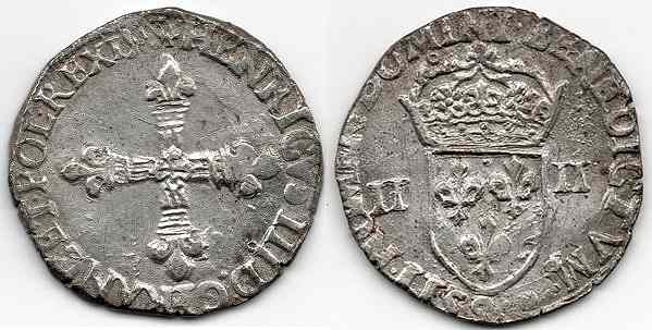 Avers : HENRICUS III D G FRANC ET POL REX (Date) / Croix fleurdelisée