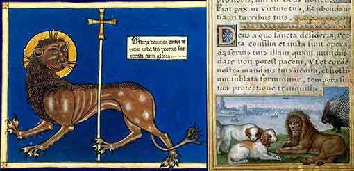 à gauche un lion du XIII - à droite un lion du XIV