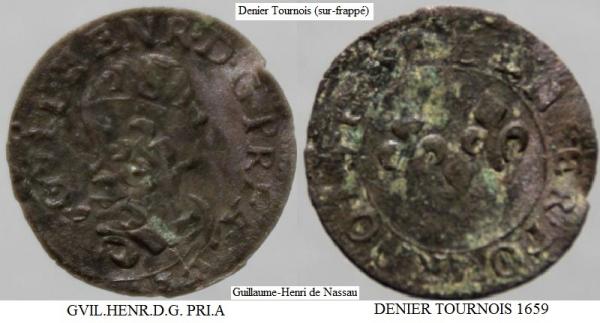 La sur-frappe ce trouve du côté profil on y aperçoit un cercle et des fleurs de lys à l'horizontale
